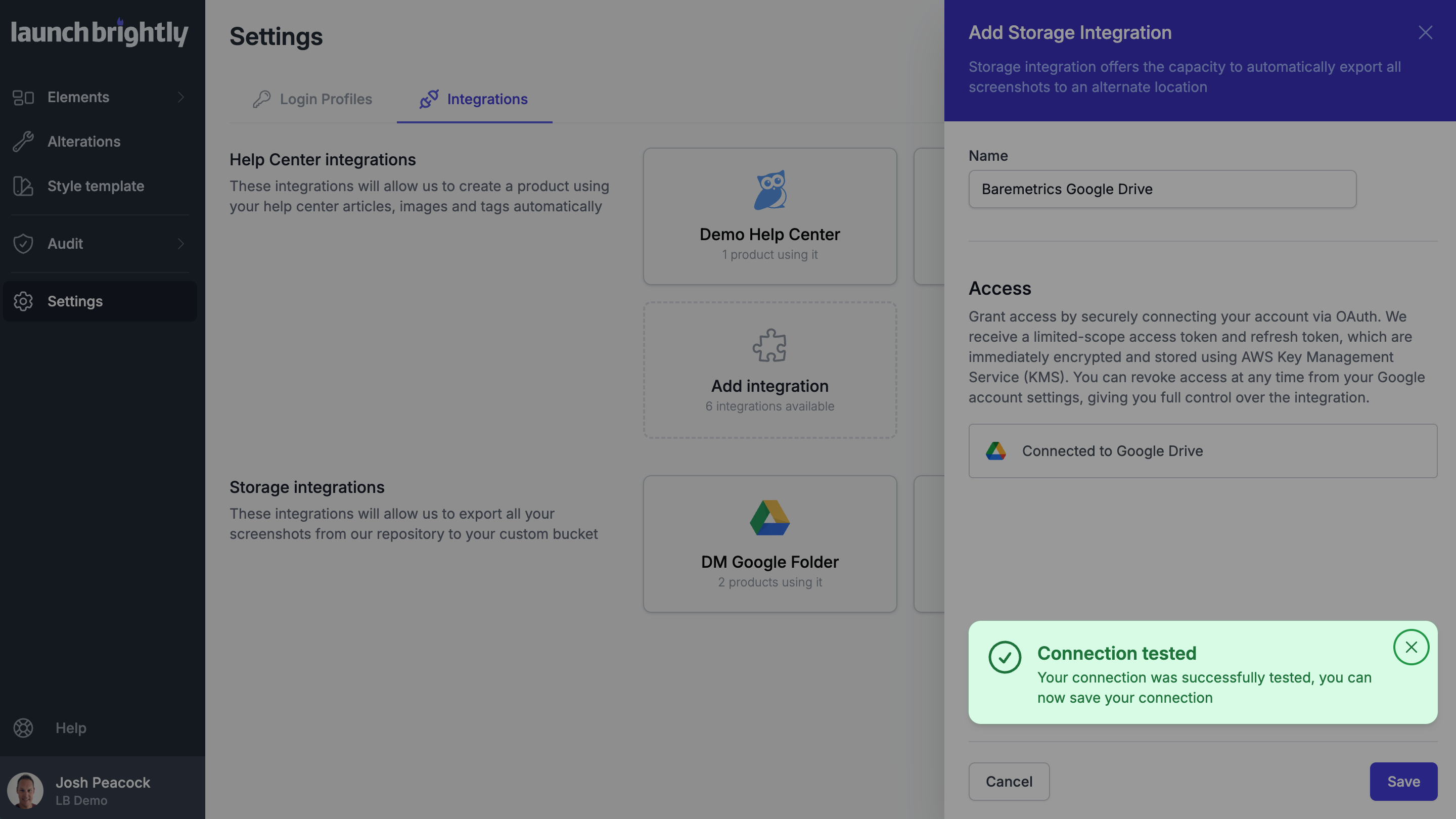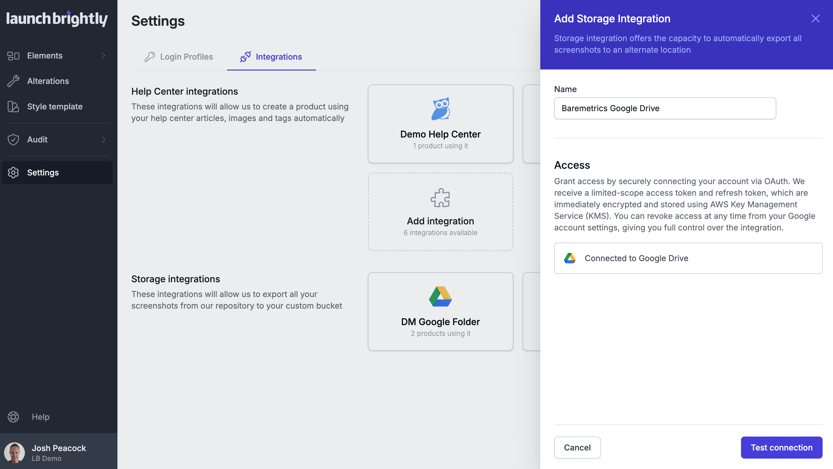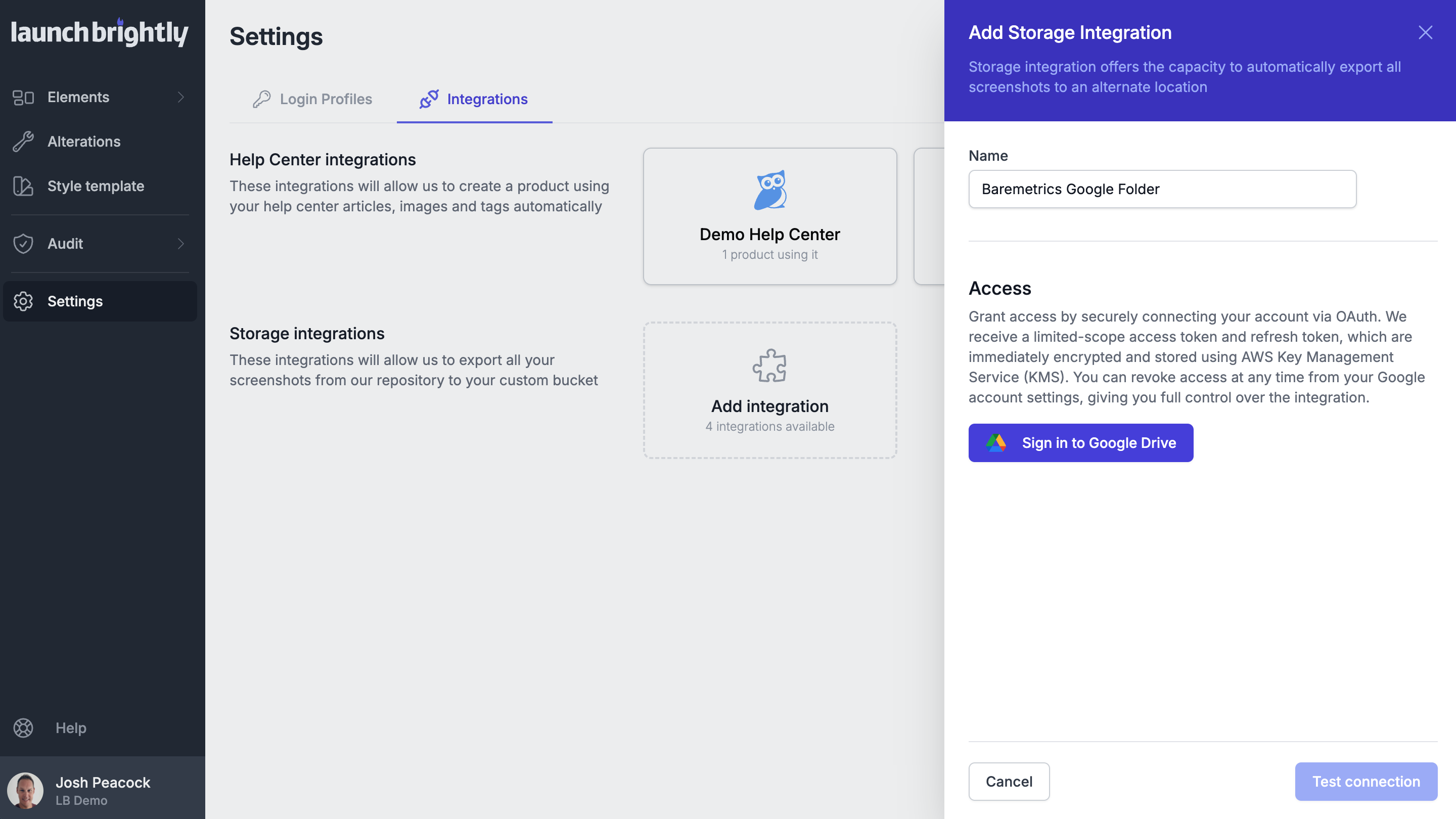 LaunchBrightly's Google Drive storage integration lets you automatically export your latest product screenshots to a Google Drive folder — making it easy to share always-up-to-date visuals with teams across your org.